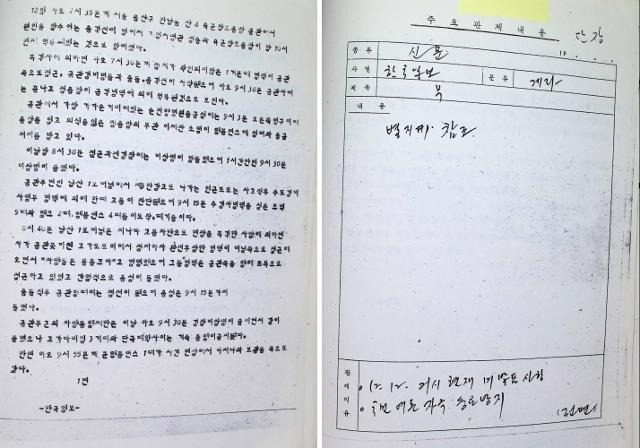 군부가 삭제한 1979년 12·12 군사반란 당일 한국일보 1면 기사 내용(왼쪽)과 기사를 삭제 조치한 이유를 담은 문서. 이민규 중앙대 교수 제공