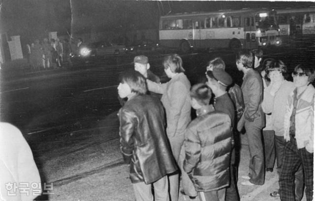 1979년 12월 12일 오후 7시 20분, 수 발의 총성이 도심을 울렸다. 퇴근길 시민들은 이 소리에 크게 놀랐다. 사진은 시민들이 총성이 울린 서울 용산구 한남동 공관촌 인근에 몰려들어 상황을 살피는 모습. 한국일보 자료사진